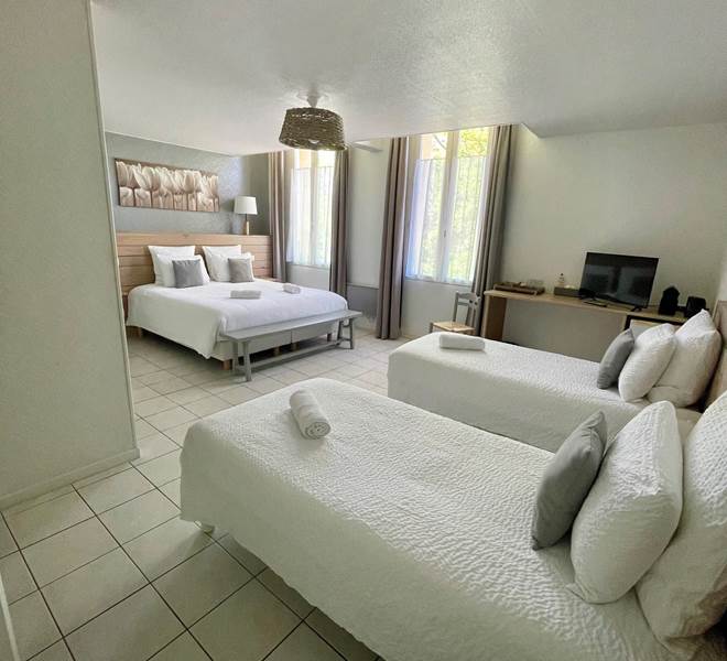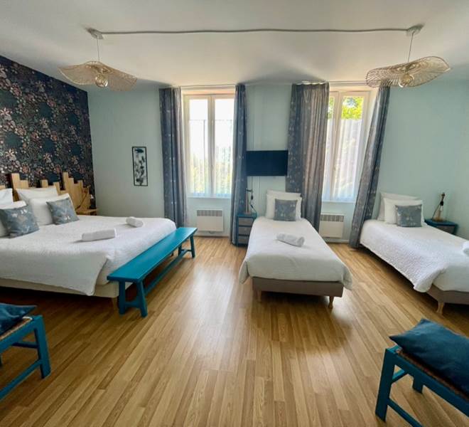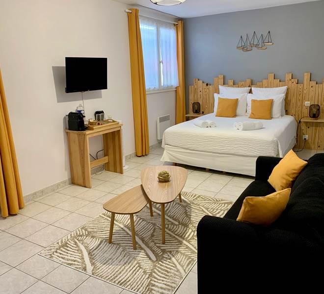 Chambre "L'île de Ré"Chambre familiale de 32m² Pour 4 PersonnesPetits déjeuner inclus1 Lit King size...